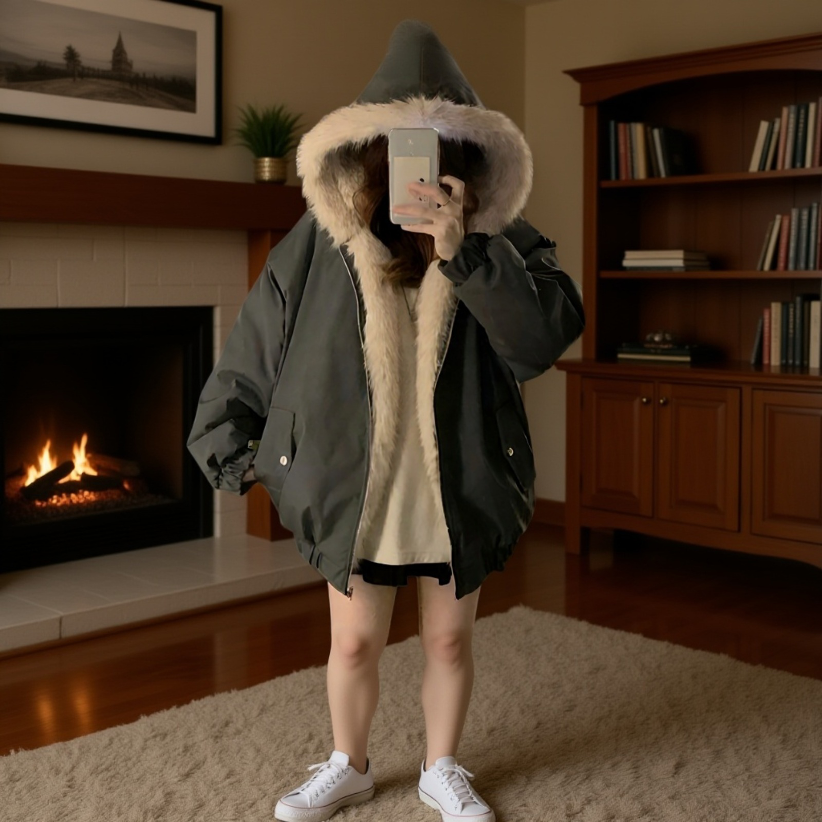 ● 도톰한 퍼 후드와 기모 안감이 있어 한겨울에도 따뜻하고 포근하게 착용할 수 있습니다.