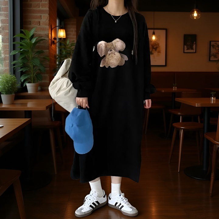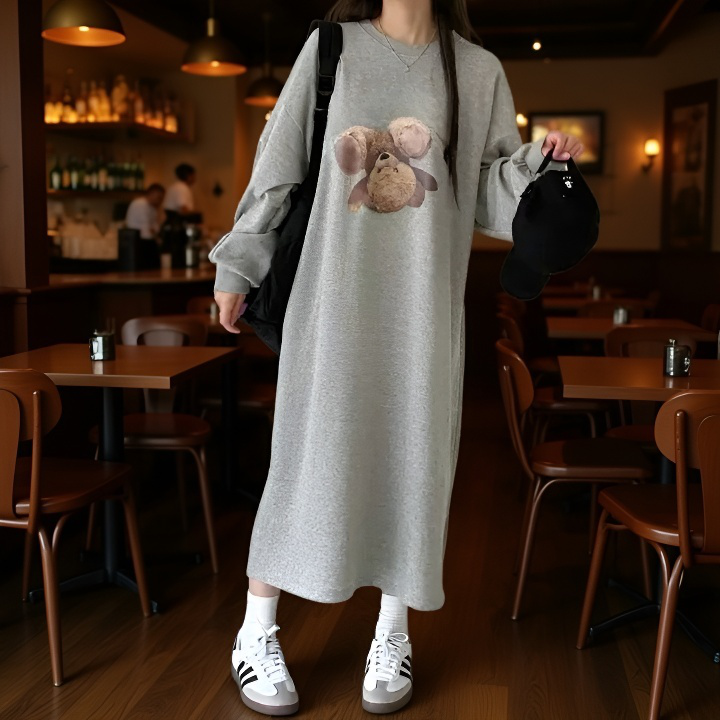 여성 긴팔 원피스 원피스 하프 기장 널찍하다 여유가 있다 느슨하다 묵히다 휴한하다 박형